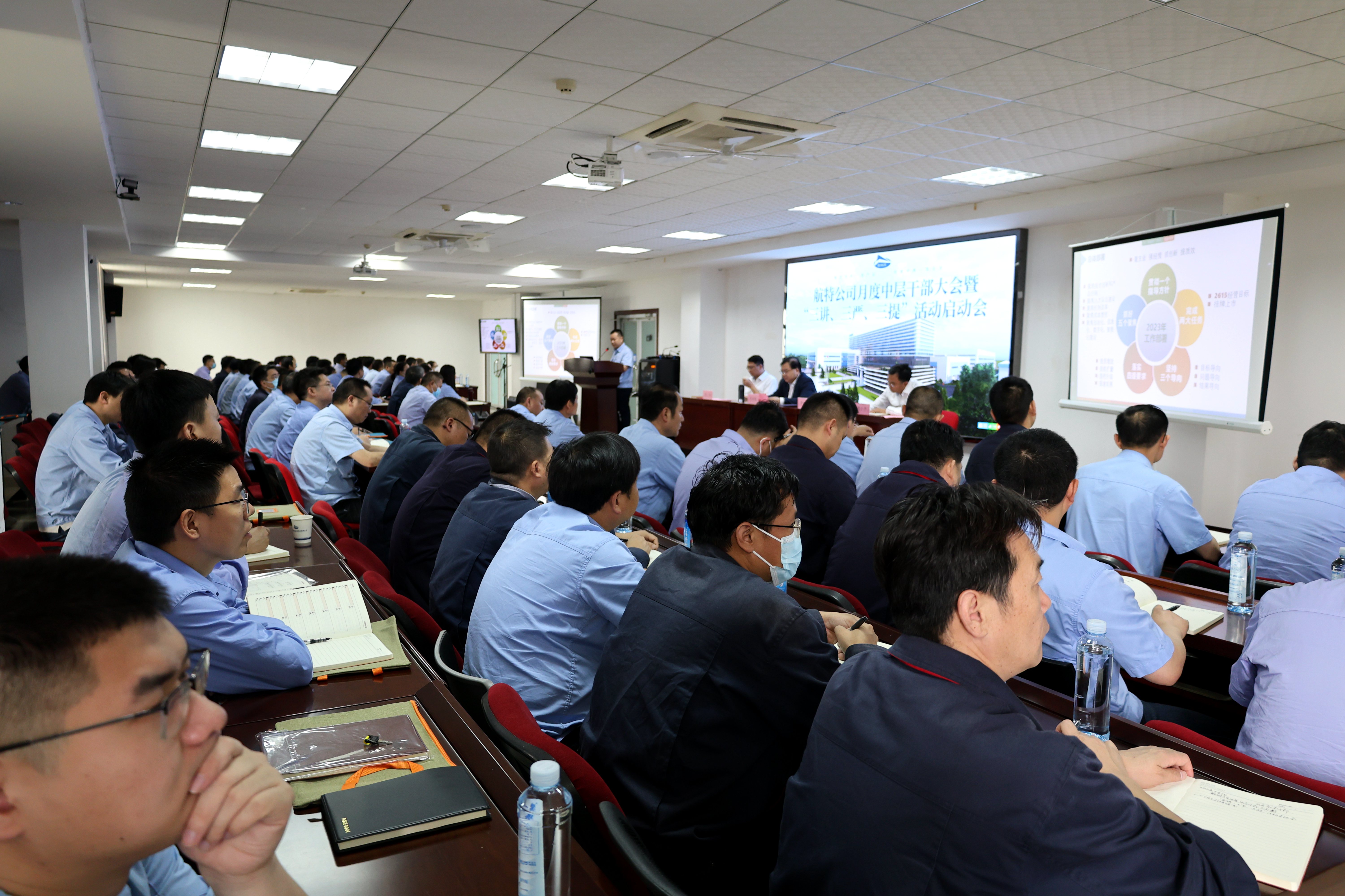 6月6日,航特裝備召開月度中層干部大會(huì)暨“三講、三嚴(yán)、三提”活動(dòng)啟動(dòng)會(huì)。公司高管,中層干部及職工代表共計(jì)160余人參會(huì)。(珠海航特以視頻形式參會(huì)) 公司副總經(jīng)理陳云主持會(huì)議。