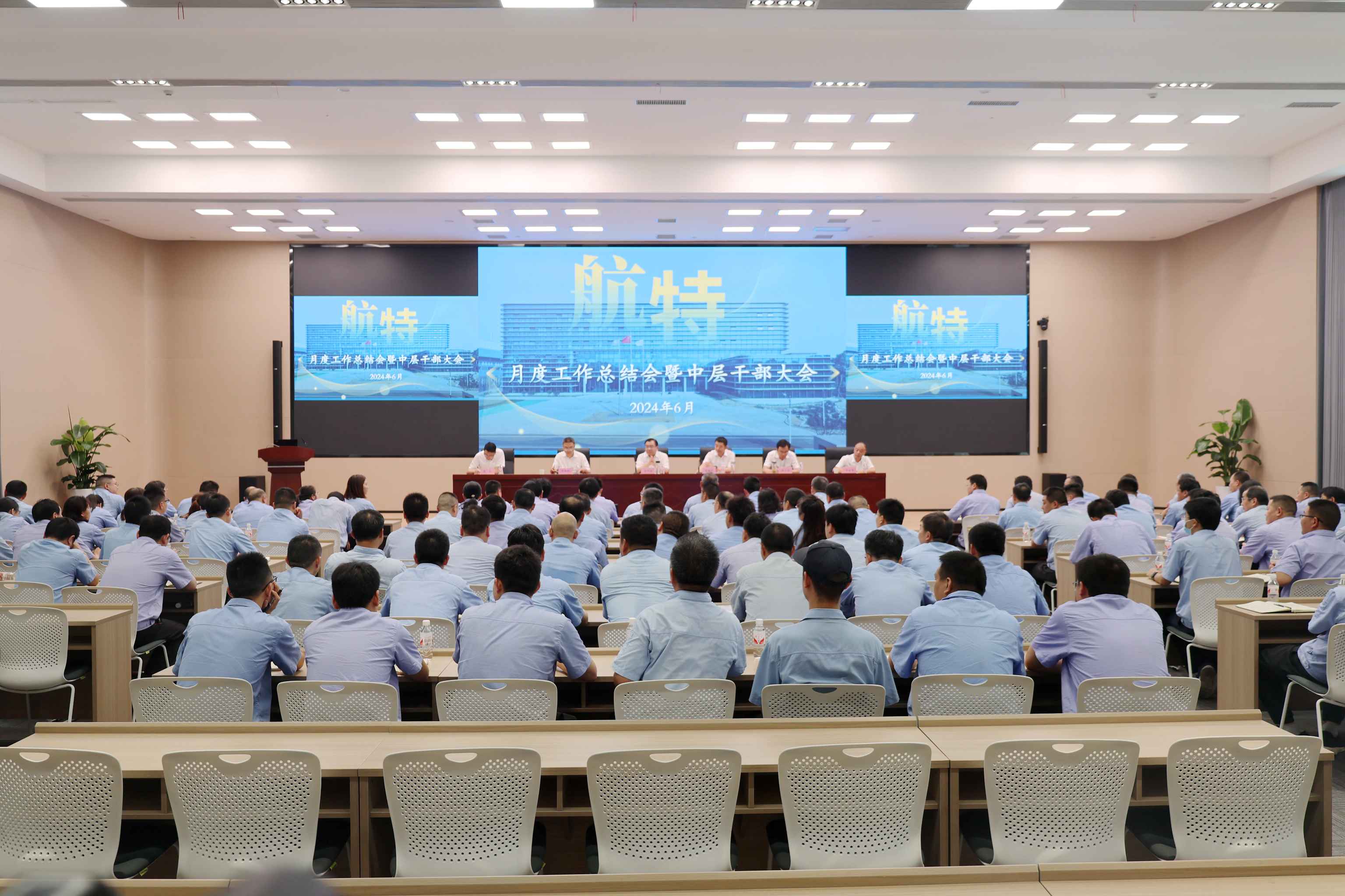 6月11日,航特裝備月度工作總結(jié)會暨中層干部大會在總部大樓暨輕量化研發(fā)中心報告廳舉行。公司高管、中層干部共計155人參會,公司黨委書記、副總經(jīng)理宋馳平主持會議。